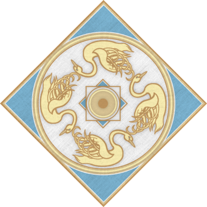 • When I created the swan sigil for crocordile, I looked at several art nouveau swans as inspiration and knew I wanted to recreate another of the designs for a second sigil. It's the same base and colors as the first Tutu device, with yellow swans for the yellow duck that becomes a girl becomes a ballet-themed savior becomes a swan. Brainstorming how to incorporate some of the PT characters, I came up with the idea of Ahiru as a Maia of Ossë and Uinen who lives in the Bay of Alqualondë as a duck or swan, and who upon seeing the sad and damaged souls of those returning after the War of Wrath, in particular the white-haired soldier with amnesia, the knight too afraid to pick up his pen, and the elven maiden that fears no one would love her, wishes to help them heal. She takes upon an elven form to interact with them, mostly through the healing power of dance. Her costume in the series was heavily based on that of Princess Odette from Swan Lake, hence the name for this swan-motif sigil.