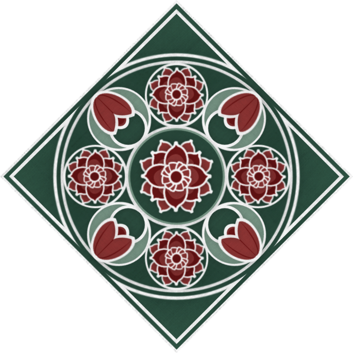 I revisited the color scheme from this device, as it was a palette I liked and thought it deserved something more personally satisfactory. The design is built around the stylized rose, and the bold outlines and emphasis on geometry outweighs the more naturalistic stylized buds offsetting the repeating roundels of the full bloom. Thus it feels more like a Noldo than a Sinda. If I were to assign any canon character to this sigil, my personal pick is Meleth, the nurse of Eärendil for when he lived those first seven years in Gondolin. Though she appears only in the Book of Lost Tales, then again, most of the lords of Gondolin also only appear in that same document, and fandom knows them. We have no clue about her origins aside from the fact that her name is Sindarin for ‘love’ and that she would have been a valued servant of Princess Idril and young Eärendil.